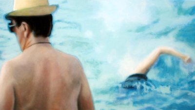 Swimmer and pool attendant